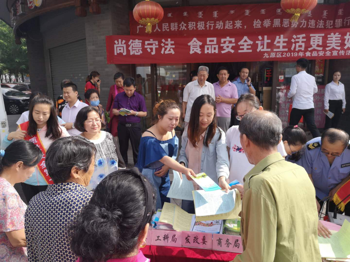 按照国务院食品安全办、自治区食药安办及包头市食药安办关于开展食品安全宣传周活动的有关要求,进一步普及食品安全知识,增进全社会对食品安全的参与意识,动员全社会关心、支持和参与食品安全工作,根据区食品安全委员会办公室下发的《九原区2019年食品安全宣传周活动方案》要求,6月25日,围绕“尚德守法 食品安全让生活更美好”的活动主体,开展了食品安全科普宣传活动。活动走进九原区横竖街,向社区居民进行食品安全科普知识宣传,发放了《食品安全手册》、《科普小知识》、《低碳知识手册》等科普丛书,共计200多册,同时发放了科普纪念品、科普手提袋150份,为社区居民普及食品安全、健康生活、低碳生活的窍门,让群众了解更多的科普知识。