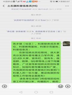 二是营造线上线下防控科普工作大格局。组织全旗3个乡、5个镇、11个社区、24个科普成员单位、3个科普基地,动员广大科技志愿者队伍、科普信息员队伍,发挥21个乡村、社区、校园科普E站创建单位作用,通过电子显示屏、村村响广播、宣传栏、宣传车、横幅、微信群、微博、QQ群、美篇等线上线下传播载体,广泛传播疫情防控科普知识。沟门、美岱、双龙、萨拉齐、苏波盖等乡镇,充分利用微信公众号、科普信息员微信群传播防控科普知识500多条次。农林社区通过“农林之声(106人)”、“图书馆教师咨询、服务群(225人)”等微信群,广泛传播疫情防控科普知识258条次。敕勒川博物馆在LED屏每天滚动播放“科普中国”疫情防控知识微视频。加强有关政策措施宣传解读工作,维护社会稳定,维护人民群众健康,应用“土右旗科普信息员”微信群等网络平台有针对性的进行解疑释惑和科学辟谣,引导群众正确理解、积极配合、科学参与疫情防控,不断增强自我保护意识。