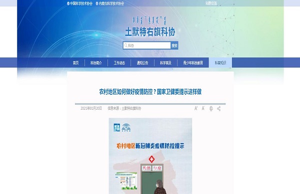下一步,工土右旗(科协)将继续通过微信公众号、科协网站、科普教育基地等宣传阵地,多举措、多渠道及时精准传播疫情防控知识,发挥疫情防控科普工作主力军作用。