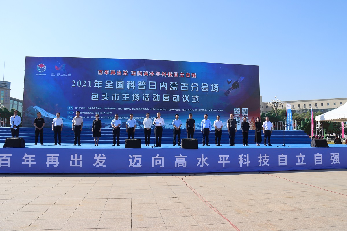 金秋逢盛会,科普惠全民,9月11日,包头市科协联合市委宣传部、教育局、科技局、自然资源局、生态环境局、水务局、农牧局、卫健委、应急管理局共同主办的2021年全国科普日内蒙古分会场包头市主场活动正式启幕。自治区科协主席赵吉、包头市人大常委会副主任刘琨、市政协副主席贺俊、自治区科协学会部齐晓轩及主办方相关领导出席活动。