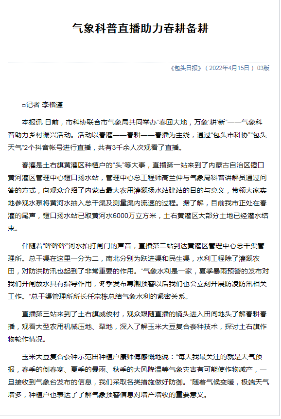 气象科普直播助力春耕备耕(包头日报)