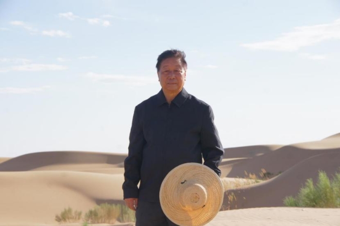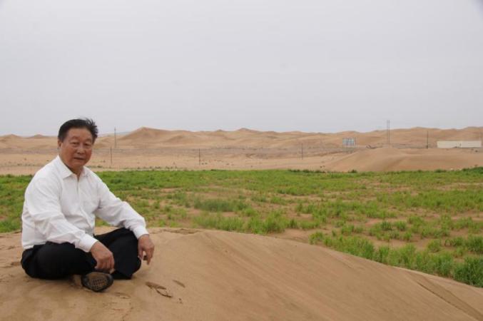 林占熺在内蒙古阿拉善菌草治理流动沙地示范基地