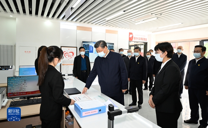 5月10日,中共中央总书记、国家主席、中央军委主席习近平在河北省雄安新区考察,并主持召开高标准高质量推进雄安新区建设座谈会。这是10日上午,习近平在容东片区南文营社区党群服务中心考察。新华社记者 李学仁 摄