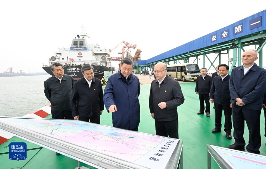 5月11日至12日,中共中央总书记、国家主席、中央军委主席习近平在河北考察,并主持召开深入推进京津冀协同发展座谈会。这是11日下午,习近平在沧州市黄骅港煤炭港区码头考察。新华社记者李学仁摄