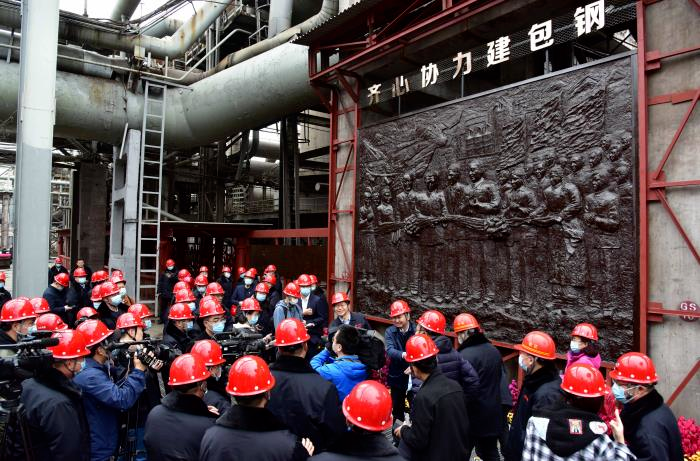▲2021年3月,党史学习教育中央宣讲团走进包钢宣讲。包钢集团供图