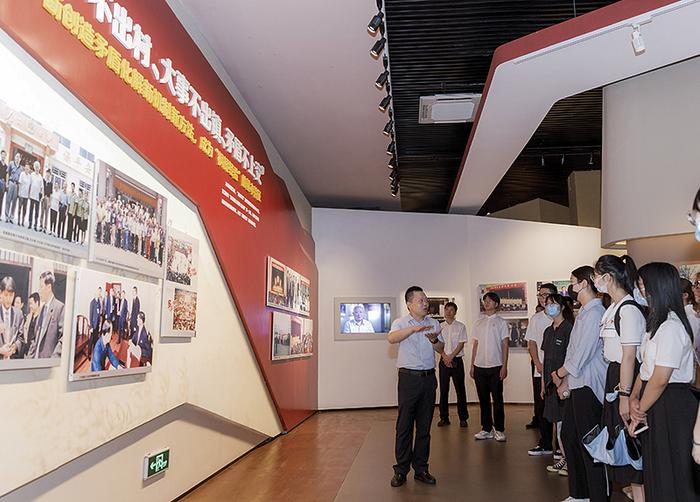 青年学子在浙江省诸暨市枫桥镇的枫桥经验陈列馆参观学习(2022年8月25日摄)。