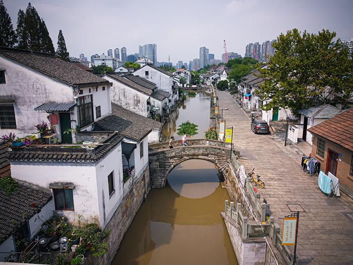 拾级登上园内高拱石桥,习近平总书记举目四望。眼前,古运河流水绵延;不远处,高架桥上客货车辆疾驰而过,给人以穿越古今之感。总书记感叹道:“在这里可以畅想一下古今沧桑。”