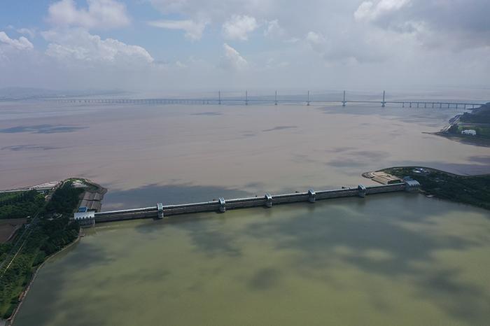 2023年8月4日拍摄的曹娥江大闸(无人机照片)。
