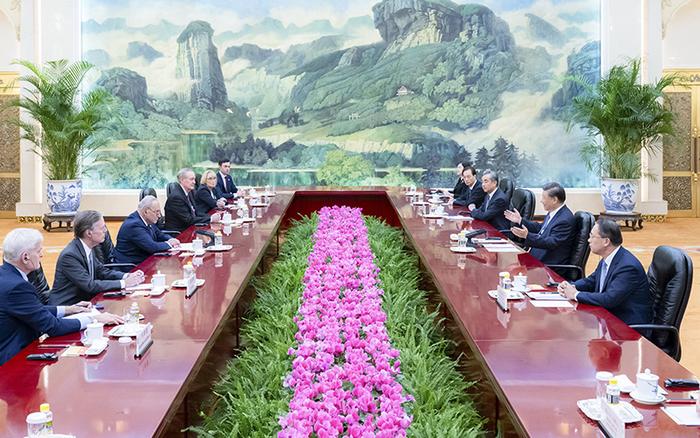 10月9日下午,国家主席习近平在北京人民大会堂会见美国国会参议院多数党领袖舒默率领的美国国会参议院两党代表团。