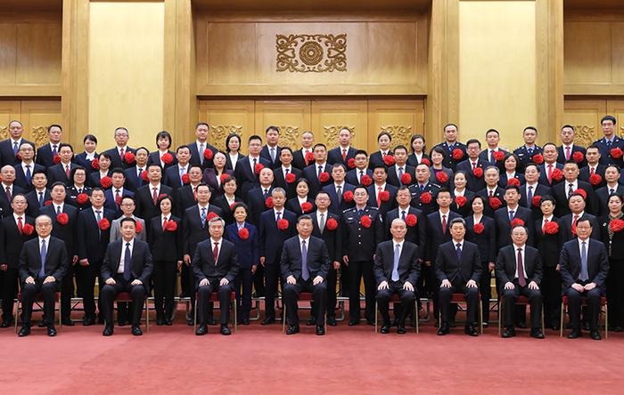11月6日,党和国家领导人习近平、蔡奇、李希等在北京人民大会堂会见全国“枫桥式工作法”入选单位代表。
