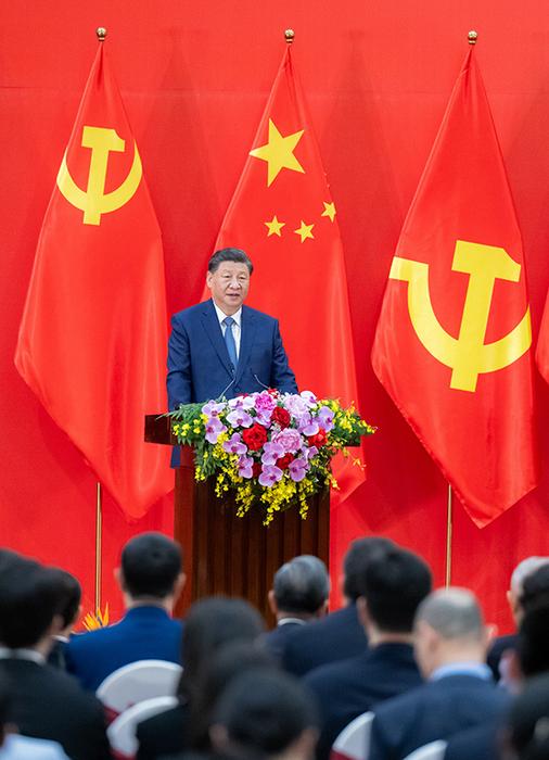 在热烈的掌声中,习近平发表题为《赓续传统友谊,开创中越命运共同体建设新征程》的重要讲话。