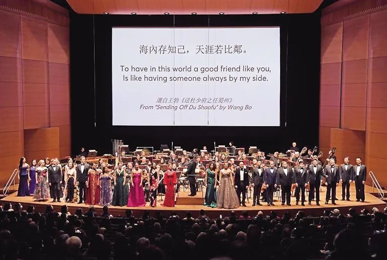 ▲1月7日,在美国纽约林肯中心,艺术家在“唐诗的回响”新春音乐会上表演《送杜少府之任蜀州》。新华社记者 李睿摄
