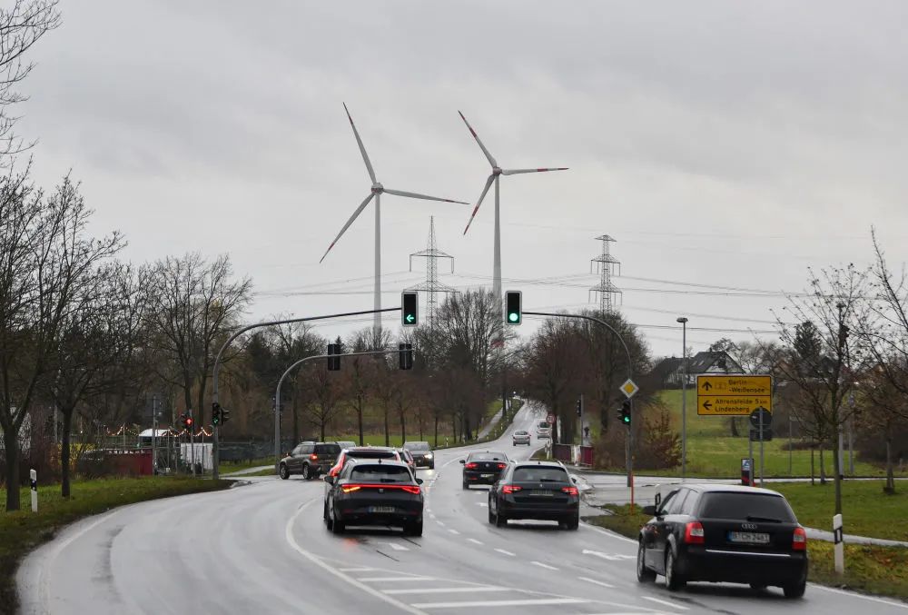 这是2023年12月20日在德国柏林和勃兰登堡州交界处拍摄的风电设施。(新华社记者任鹏飞摄)