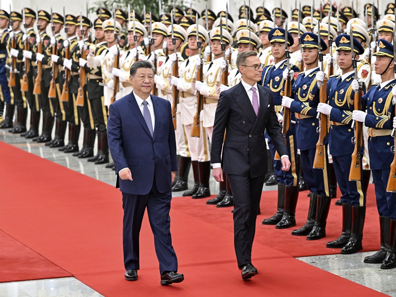 习近平指出,中芬两国都爱好和平,都倡导多边主义和自由贸易。中方愿同芬方加强应对气候变化、生物多样性保护、全球可持续发展、人工智能治理等问题的沟通和合作,携手维护世界和平稳定,推动构建平等有序的世界多极化、普惠包容的经济全球化。明年是中国同欧盟建交50周年,希望芬方继续为推动中欧关系健康稳定发展发挥积极作用,实现中芬关系、中欧关系相互促进、共同发展。